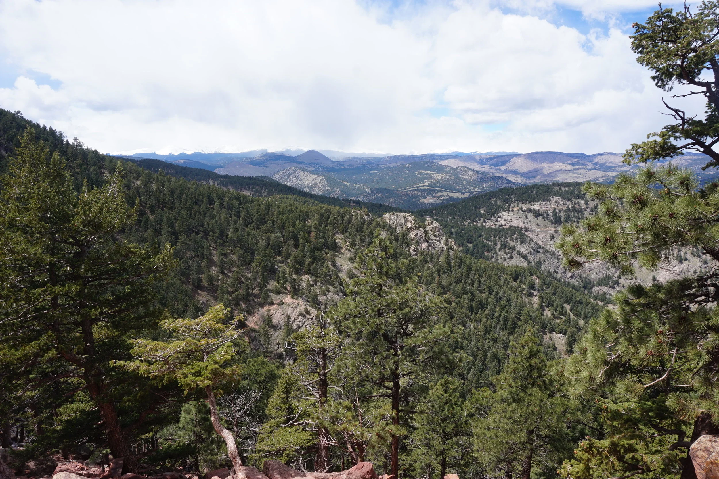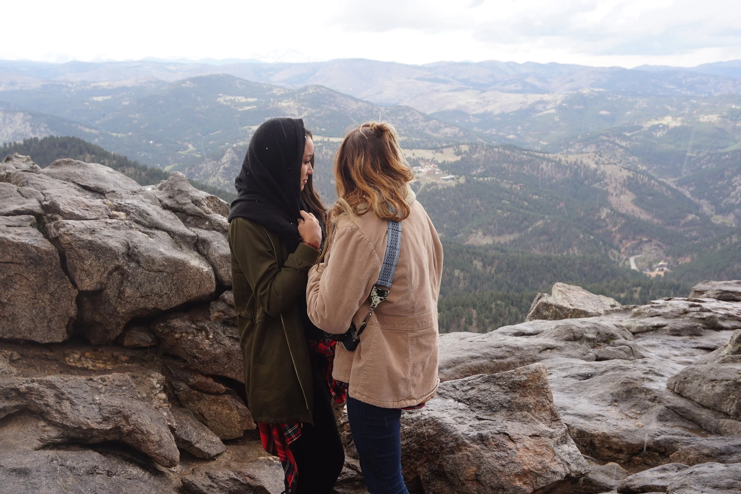 Before Megan moved to Colorado I had an old friend who already lived there and promised a quick tour of some mountains he lived nearby. So this time around it was a must we linked up. After some lunch in a small cafe called The Yellow Deli off of Pearl Street in Boulder, we drove up to Flagstaff Mountain. The drive up the mountain had a few rest stops to see different points of view of Boulder. The drive itself also proved how steep the mountain was if we would've hiked by foot. After noticing some snowfalls, the higher up we drove, I was glad my bougie ass was sitting in the heat of my friends car. About 10 more minutes driving north we finally arrived at what seemed the very top. Toward the lower stretches of the mountain we noticed a remarkable view of the Flatirons which later became the hike we would climb the very next day.