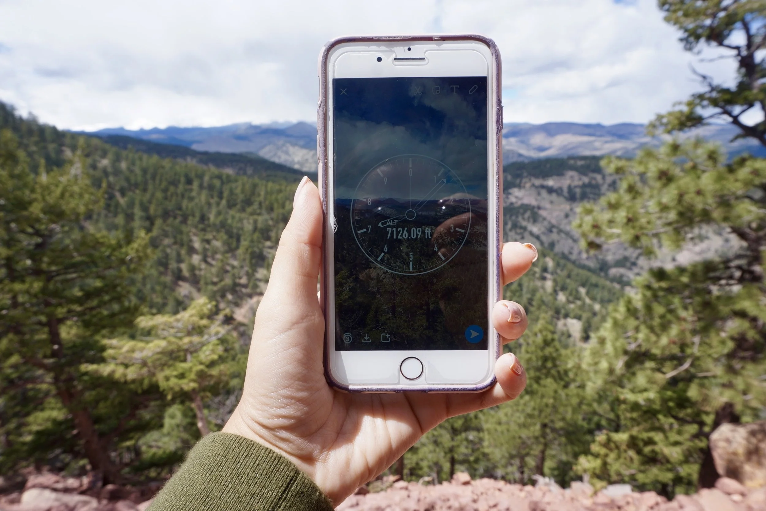 For those who don't already know I reside in Florida and the altitude where I live is practically below sea level. Now on Colorado flat ground, thanks for the snapchat altitude filter, is over 5,000ft. Now hiking a few miles up from that onto the mountain, we reached over 7,000ft!! That means my poor lungs and body temperature practically dropped.