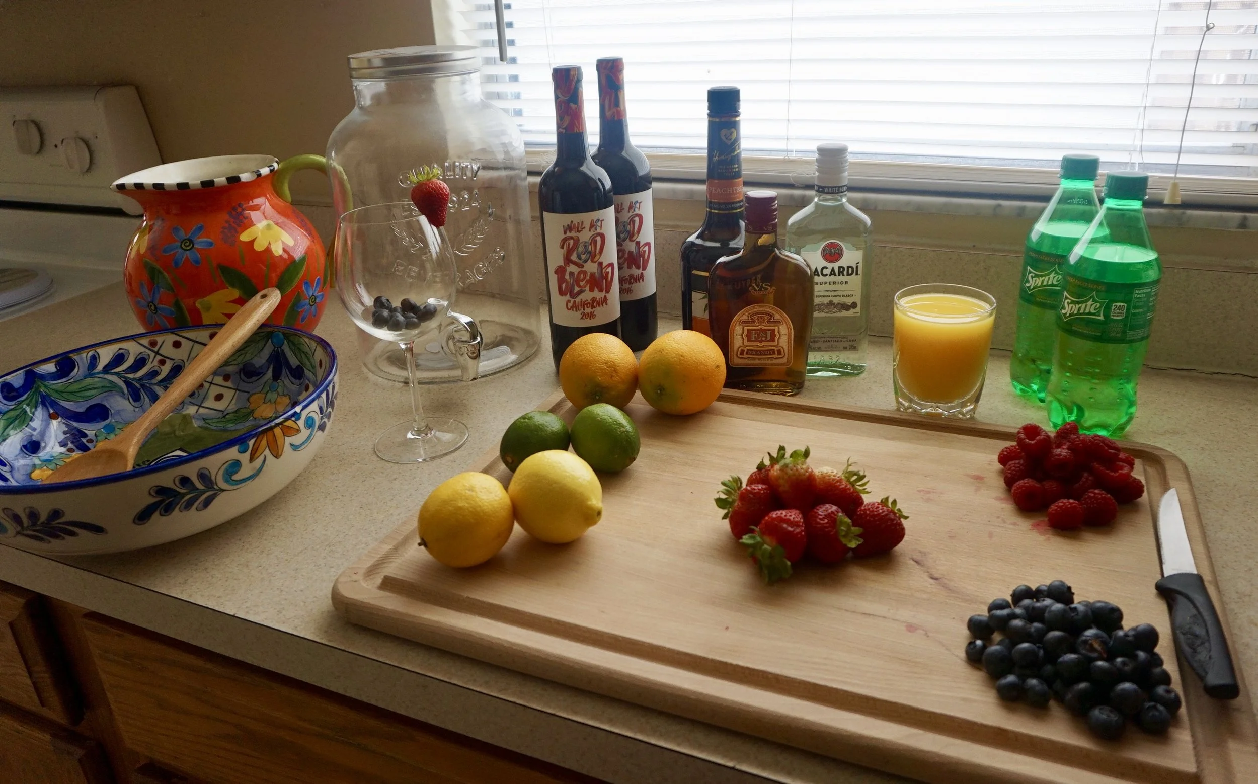 Stir up the fruit with the sugar until fully absorbed and mixed in. Then toss into choice of jug or pitcher.