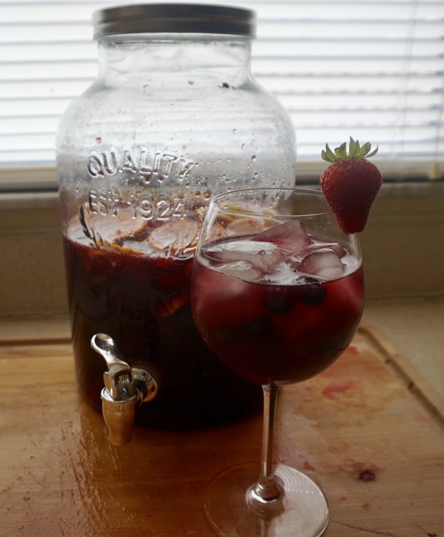 Stir in all the ingredients and refrigerate for at least 1 hour. I refrigerated my sangria for 24 hours and it tasted amazing. Major sneak attack drink! I enjoyed making this drink as much as I did drinking it! I hope you do as well.